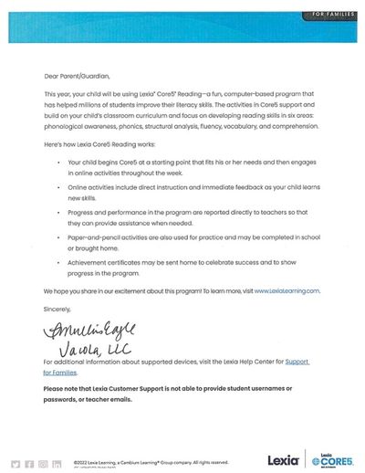 Lexia is online program that JACOLA has purchased to assist in the advancement of early literacy skills among our VPK students. In addition to working on this program at school, students may also use it at home.